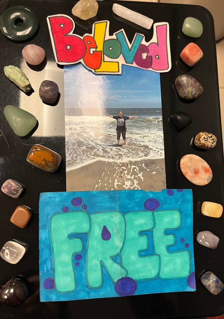 I let the words of others expectations of my life fall off of me like dying leaves on a tree. They crunch under my feet and the sound tells the story of my pain. I am letting those expectations go and creating new words. God stitches them into my being while I’m at ketamine and whispers to me the secret places She hides them. “Enough” is stitched behind my eyes. “Good,” into my heart. “Beloved” is a part of my very soul. “Holy” is where God anoints me with Her oil. “Powerful,” deep within my fire chakras. These words are my truth and they cannot be taken away.